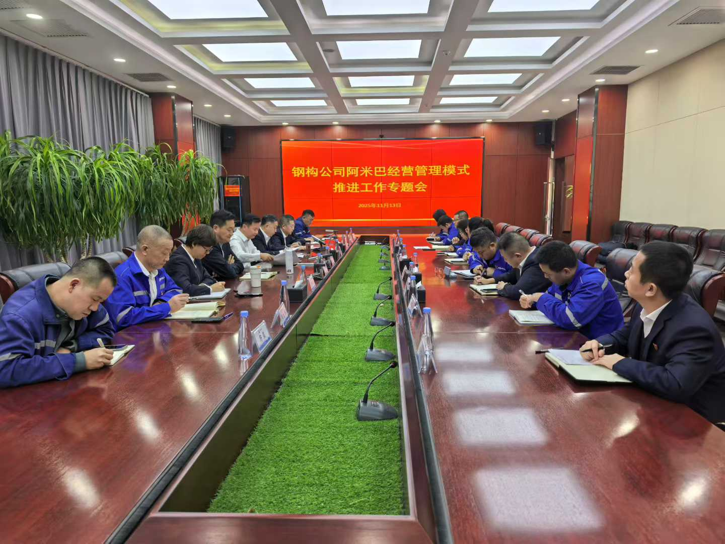 11月13日上午,钢构分公司召开阿米巴经营模式推进工作专题会,会议由分公司副总经理张同刚主持。