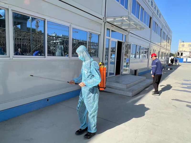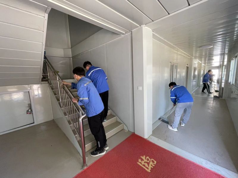 “霸州市疫情防控取得阶段性胜利来之不易,我们依然要绷紧疫情防控弦,保持现场环境卫生,持续做到疫情防控常态化,保证职工生命健康”,共产党员、项目部党支部书记白云在主题党日活动中强调。自今年2月底以来,面对奥密克戎变异株流行,全国疫情呈现点多、面广、频发等特点,疫情防控工作经历严峻考验,河北廊坊霸州市受到疫情冲击,造成项目复工复产向后推迟,工期十分紧迫,任务十分艰巨。4月24日霸州市疫情阴霾散去,项目部迅速投入保工复产攻坚阶段。党支部充分发挥战斗堡垒作用,围绕“如何抢回因疫情失去的工期,向二季度实现时间任务双过半目标交上一份靓亮答卷”为党建奋斗目标,以主题党日活动为主打,组织全体党员、积极分子开展现场、办公区卫生清理、消杀,以此阻断疫情传播链,实施项目全封闭管理。活动中,项目部党支部书记白云、项目部经理程铖分别作为党员突击队队长,组织两个突击队的党员、积极分子冲锋到施工现场、办公区,他们有的手拿抹布,有的手拿拖布,有的手拿扫帚,分工明确,团结协作,只见办公区走廊、旗台、二楼职能办公用房、围墙、会议室到处都有党员、积极分子,还有团员的身影,大家埋头苦干、不怕累、不怕脏,遇到死角,难于清理,青年党员王子安、李冬鹏主动挑大梁,爬上爬下,不放过任何一个死角,汗水和泥水浸湿了工衣,但他们依然不亦乐乎加紧清理,经过一天紧张忙碌,只见办公区窗明洁净、现场道路宽敞干净,为工程顺利运行、职工安全工作打造了优美的工作环境。“参加这次党支部主题党日活动十分有意义,党员们的模范带头作用让我受到一次深刻的党性教育,深受鼓舞,在他们的带动下,虽然一天劳动十分疲累,但走在舒适而温馨的办公区,看到文明而火热的施工现场,我十分欣慰,疲劳已是一扫而光,精神振奋,干劲更足了”,项目部党支部入党积极分子白华南深有感触地说。此次主题党日活动贴近项目施工实际见真章,出实招,取得实效,达到了活动目标。