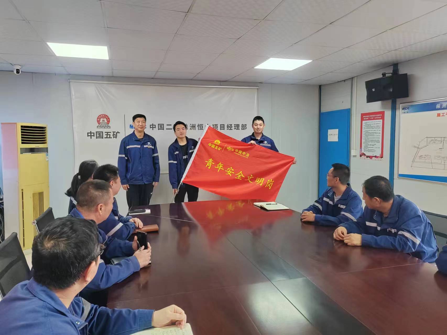 会后,党支部开展“青年安全文明岗”授旗仪式,鼓励项目青年职工要立足岗位、求真学问、练真本领,挺膺担当,创新创效,为项目建设奉献青春力量。