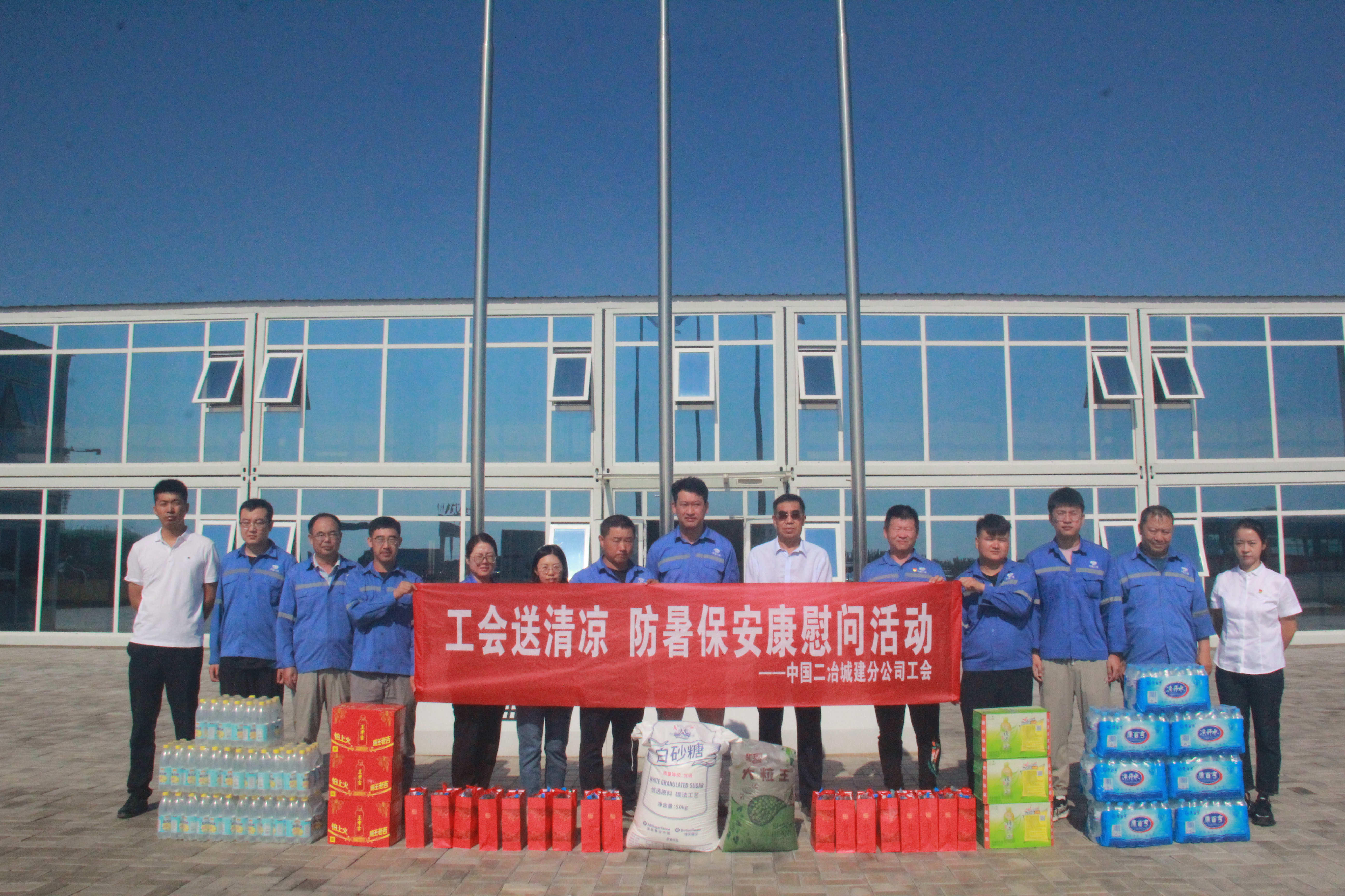 鉴于室外项目的特殊性,分公司一改传统的慰问方式,结合“我为群众办实事”事项清单,城建分公司党委副书记、副总经理杨耀带队深入施工现场进行实地调研,充分了解一线人员的需求,并准备了凉茶、冰水、碳酸饮料等。此外,工会还宣讲防暑降温的注意事项、紧急救护的知识。