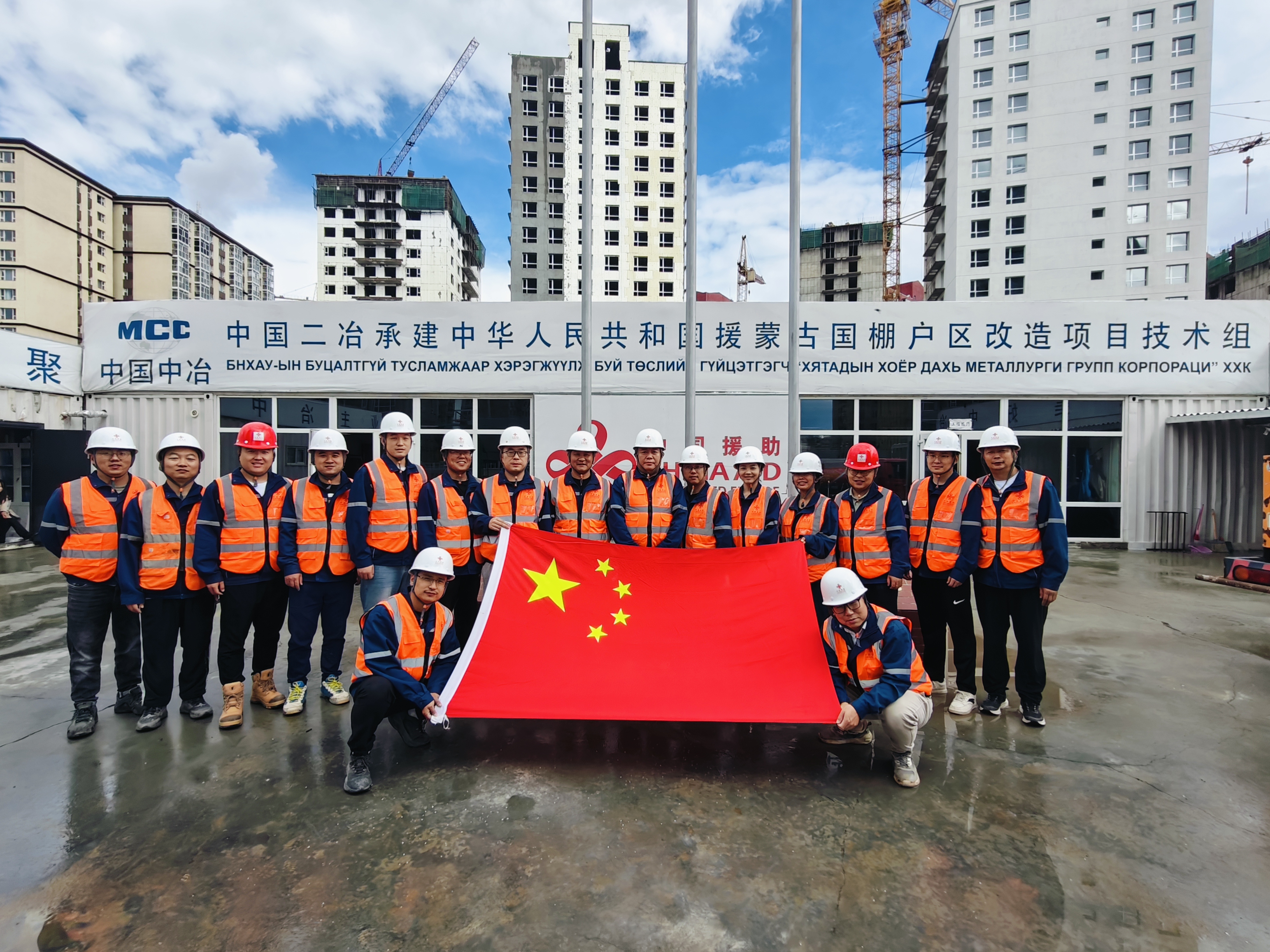 “春华秋实,岁物丰成。站在新时代新征程上,我们迎来了中华人民共和国成立75周年。作为青年一代,生逢盛世,沐浴着祖国波澜壮阔的历程、无比光明的前程,深感自豪与光荣。今年我们坚守海外项目一线,在火热的施工现场与国旗合影,祝福祖国繁荣昌盛,国泰民安,十分激动,在后续工程建设中,我们要继续艰苦奋斗,顽强拼搏,用青春和热血打造援外项目精品”。奋战在援蒙古棚户区改造项目的团员青年向祖国深情告白。