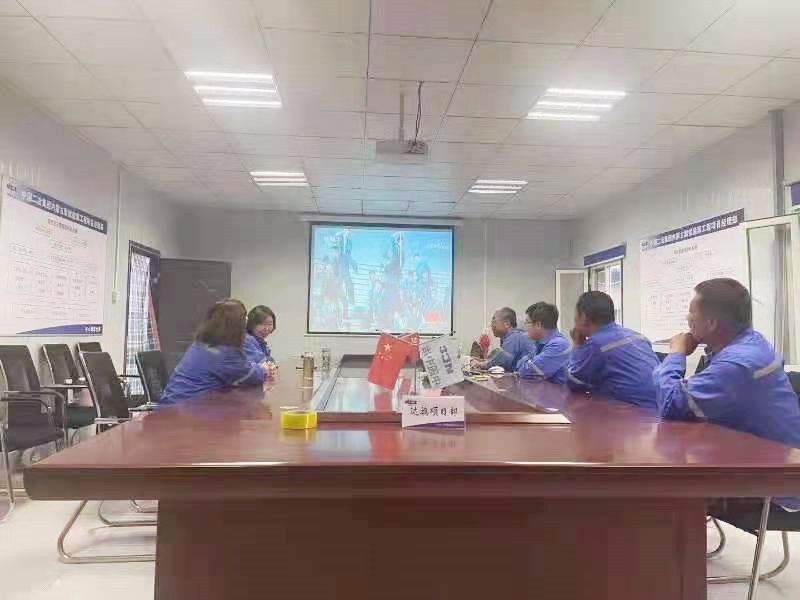 筚路蓝缕创伟业,初心不忘再起航。20时整,伴着《跟着共产党走》的深情演唱,文艺演出拉开帷幕。戏剧与舞蹈《破晓》,将城建分公司党员职工的思绪拉进了幽深的历史。舞台背景大屏幕上,一帧帧黑白影像,诉说着中华民族在近代以后,遭受前所未有的苦难。两侧表演区,一幕幕情景剧,展现着早期中国共产党人的艰辛求索。坐落在江苏淮安市的城建分公司智慧谷成果转化中心项目在做好施工生产的同时,组织项目部党员、青年职工早早来到会议室,目不转睛观看,百年大党波澜壮阔的史诗,让职工感受到这一场场震撼人心的演出,也是一次生动的党史教育。