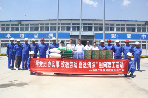 炎炎烈日送清凉,关爱员工暖人心。7月13日,中国二冶启动“致敬劳动 夏送清凉”慰问职工活动,公司党委书记、董事长徐永锋,总经理、党委副书记高文华等领导纷纷来到施工现场,将绿豆、白糖等防暑慰问品送到一线员工手中,为他们送去了亲切问候和浓浓关怀。