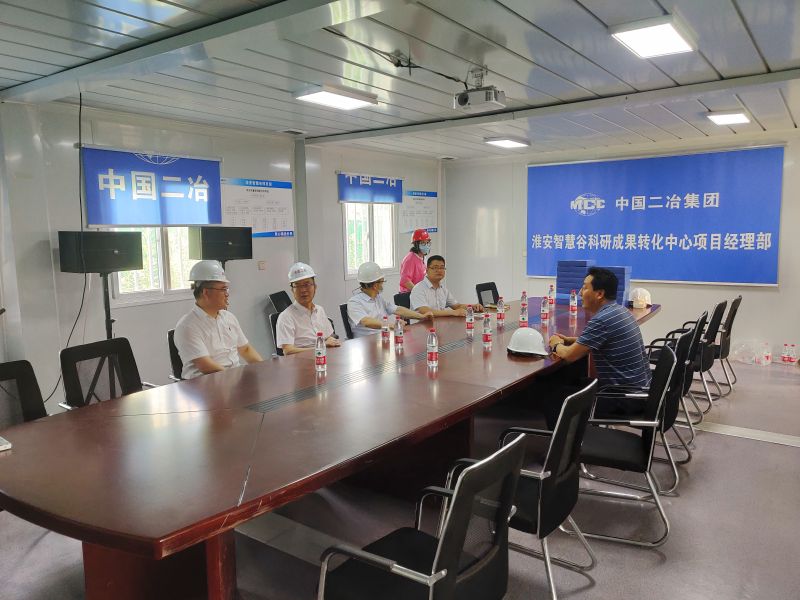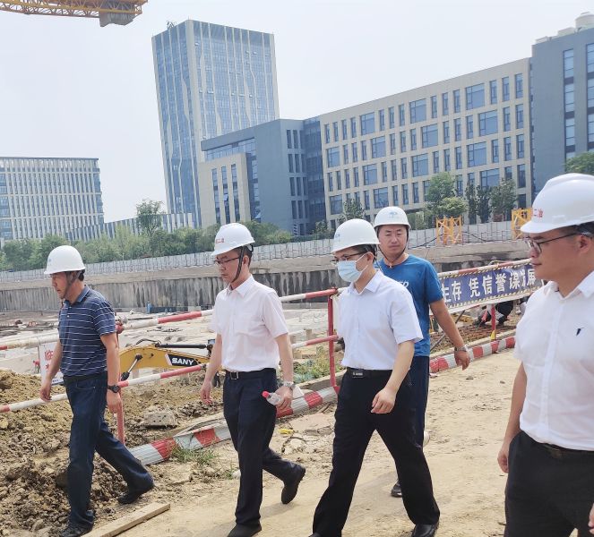 7月20日,江苏省淮安市科教产业发展园区办公室副主任王爱东、项登鹏、园区科教控股公司总经理董海涛一行到城建分公司智慧谷科研成果转化中心项目检查指导工作,对项目工程建设提出要求。城建分公司智慧谷项目经理、总工程师陪同检查指导。