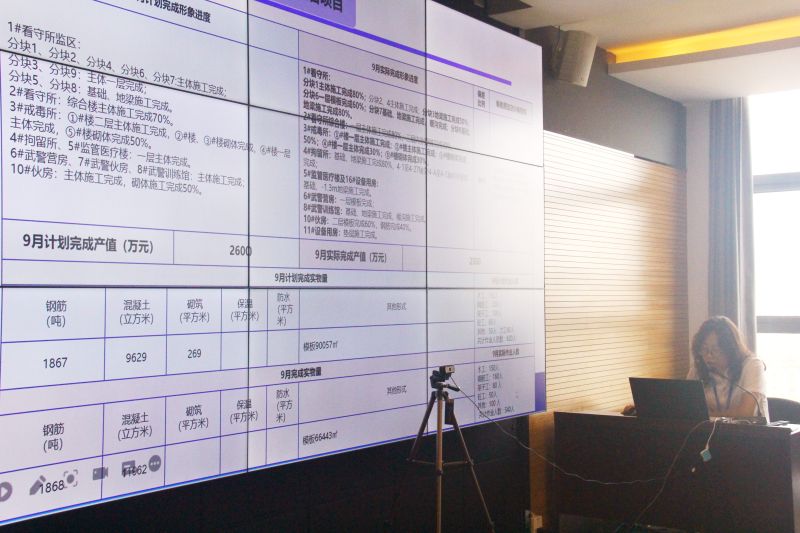 会上,工程管理部采取本月进度与上月进度对比、图文与数据相结合等方式,精准分析了在建项目在履约过程中存在的不足和原因,通报了1-9月份项目施工产值、工程进度、实名制管理、分包招标、项目策划、项目履约过程中存在的问题,安排了10月份施工进度计划和主要工作。包头市公安局监管场所、金力永磁、大地熊、堇创等四个项目汇报了工程建设进度、项目策划、方案编写、分包计划及合同签订、物资招标采购、机械设备、商务、安全、技术质量、当前存在问题等管理情况汇报。