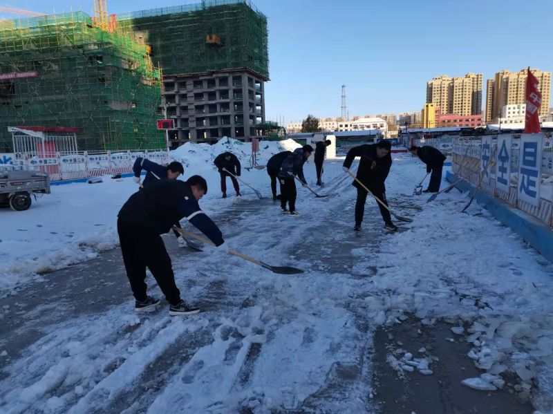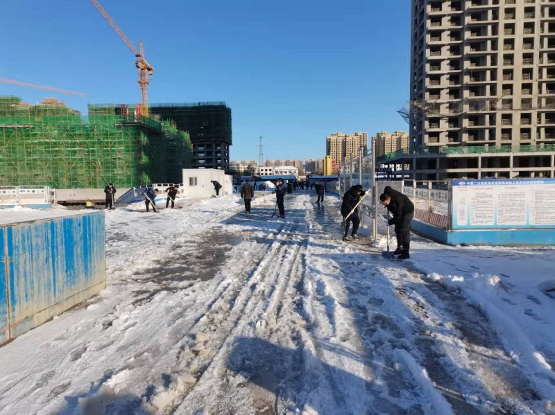初冬时节,首场大雪纷纷扬扬席卷西北、华北地区,坐落在燕赵大地的城建分公司河北霸州建设道国蕴城项目白雪皑皑,现场主干道被厚厚的积雪覆盖,雪天路滑,使得施工运输车辆受阻,高空施工冰冷湿滑,施工进度受到极大影响。城建分公司多措并举,积极应对,11月8日-11月11日,项目部连续开展“雪中有我,城建人温暖初冬保履约”活动,组织职工清理积雪,全力保障施工道路畅通。