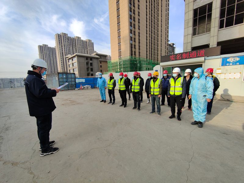 此次活动是城建分公司进一步落实公司疫情防控专题部署工作会议精神,充分发挥央企顶梁柱作用,织密疫情防控网,守护职工安全健康工作的一项重要活动,项目部高度重视,精细安排,提前制定应急预案指导演练活动,召开专题动员会议,成立演练工作领导小组,明确职责,层层落实责任,确保活动圆满成功。本次演练模拟1名职工在实名制通道测温时有发热症状,项目部迅速启动应急预案,通过电话沟通,救源组、消杀组迅速进入演练状态,拉开演练帷幕。