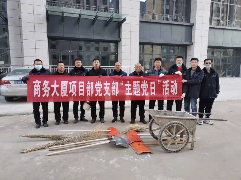 本次主题党日活动是两家党支部深入贯彻落实党的十九届六中全会精神,深化拓展党史学习教育,以学促行,充分践行“我为群众办实事”实践活动的一项重要举措。为了确保主题党日活动有声有色,见到实效。活动前,商务大厦项目部党支部加强与建设方包头新都市建设投资运营管理公司相关负责人沟通联系,围绕如何让活动在“精、深、实、牢”四字管理要义上见真章,组织党员座谈交流,展开热烈讨论,不断在活动方式和活动内容上进行深度拓展。与此同时,项目部党支部书记亲自深入调研,见缝插针,利用晚上时间,逐一与每位党员谈心谈话,征求他们对主题党日活动的意见和建议,最终出台主题党日活动方案,明确这次活动以解决问题为主线,开展义务劳动,重点突破近期降雪造成现场道路冰冻湿滑,影响施工车辆行车安全、职工工作生活不便等实际问题,推进工程安全文明施工,共同建设美好家园,赋能美丽包头文明城市建设。活动受到全体党员倾力支持,人人踊跃参加,主题党日就此拉开活动帷幕。