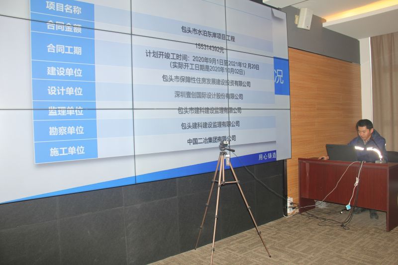 城建分公司党委书记王蒙强、总工程师刘润明、安全总监、在包项目部经理、部室负责人在主会场参会,在包项目部其他经营管理人员、外地项目部通过视频参会。
