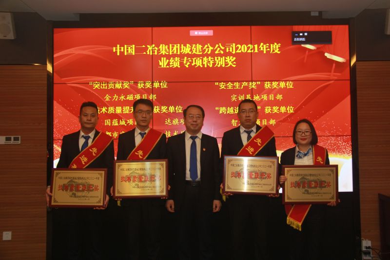 2021年,在抗击疫情、复工复产、抗洪抢险大战大考中,城建分公司胸怀国之大者,用不变的坚守,迎难而上,主动作为,奋力拼搏,交出了一份份优秀的成绩单。全体职工持续发扬“一天也不耽误,一天也不懈怠”朴实厚重的中冶精神,胸怀企业大局,深化改革创新,聚力公司提质增效,苦干实干埋头干,坚守初心勇担使命,奋力推动公司高质量发展。一年来,涌现出贡献大、业绩优、创造新、品德高的劳动者榜样,为了表彰先进、鼓舞斗志,弘扬正气,激发员工建功立业热情和创新创造潜能,培育“劳动光荣、技能宝贵、创造伟大”的新时代新风尚。会上,城建分公司表彰了永州项目部等4个单位为城建分公司2021年度“先进集体”荣誉称号;30名优秀职工被评为2020年度“先进工作者”;金力永磁等8个单位获得业绩专项特别奖殊荣。
