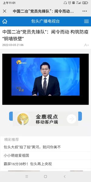 3月5日-6日,包头电视台一套《包头新闻》播出《中国二冶“党员先锋队”:闻令而动,构筑防疫“铜墙铁壁”》,充分展现中国二冶驻包央企的社会责任和使命担当。