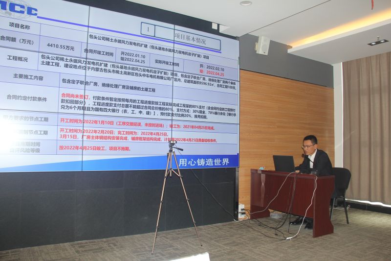 会上,分公司总工师刘润明着重强调了建立电子资料库需要收集在建项目招投标文件、设计图纸、施工方案、施工组织设计等内容需要注意的事项。要求市场营销部、工程管理部相关部门要积极配合,保证电子资料库信息录入按时按质完成。与此同时,包头市水泊东岸、包头公司稀土永磁风力发电机扩建等两个项目进行专题汇报。