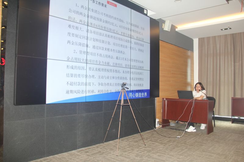 该公司总会计师总结了1-5月份清欠工作,部署了6月份主要任务。她指出,两金是集团公司考核的约束性指标,目前,分公司两金压降难度加大,各项目部认真梳理项目进度完成情况,按照形象进度制定回款计划和结算计划。项目经理是第一责任人,要制定两金压降措施,通过回款根本性压降两金。要认真疏理债权债务情况,完工项目要加快竣工结算进度,减少逾期损失。相关职能部室要夯实基础管理工作,积极迎接上半年审计进驻检查工作。在建项目要科学组织,合理安排,推进项目进度,增强自身造血能力。要紧盯对内对外结算,及时回收工程款,为公司高效运行提供强有力的资金保障。