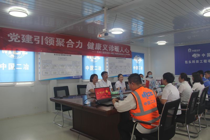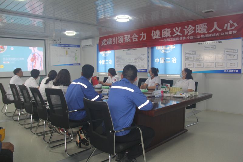 为了巩固拓展党史学习教育成果,深入推进“我为群众办实事”活动,做好建筑工人的职业健康保障工作,促进职工身心健康。7.1前夕,包钢三医院内系第一、第二党支部与中国二冶城建分公司机关党支部、达旗党支部在科田项目联合开展“党建引领聚合力 健康义诊暖人心”党建联建活动,向高温下的劳动建设者致敬。