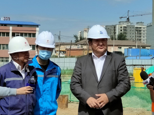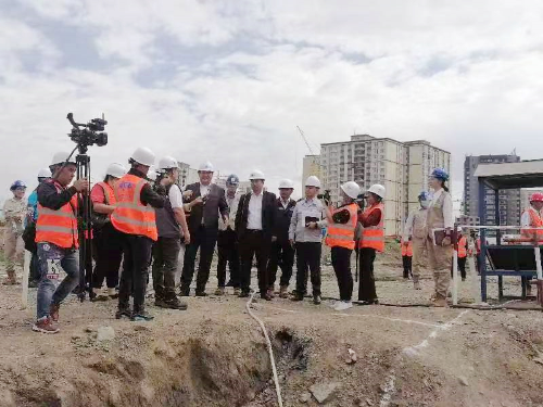 8月14日,蒙古国建筑与城市建设部部长孟和巴特尔一行到中华人民共和国援建、中国二冶承建的蒙古国棚户区改造项目检查指导工作并提出要求。
