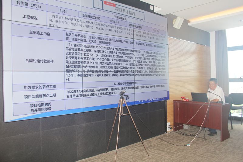 会上,工程管理部通报了在建项目1-8月份项目履约、营业收入指标、分包、招标、机械设备租赁、实名制等管理情况后,全面下达了9月份营业收入指标,提前安排了四季度产值计划,周密部署了当前工程管理主要任务。达旗默锐和明阳智慧能源两个项目就1-8月份工程建设进度、项目策划、方案编写、分包计划及合同签订、物资招标采购、机械设备、商务、安全、技术质量、当前存在问题等管理情况进行汇报,明确下月主要工作。