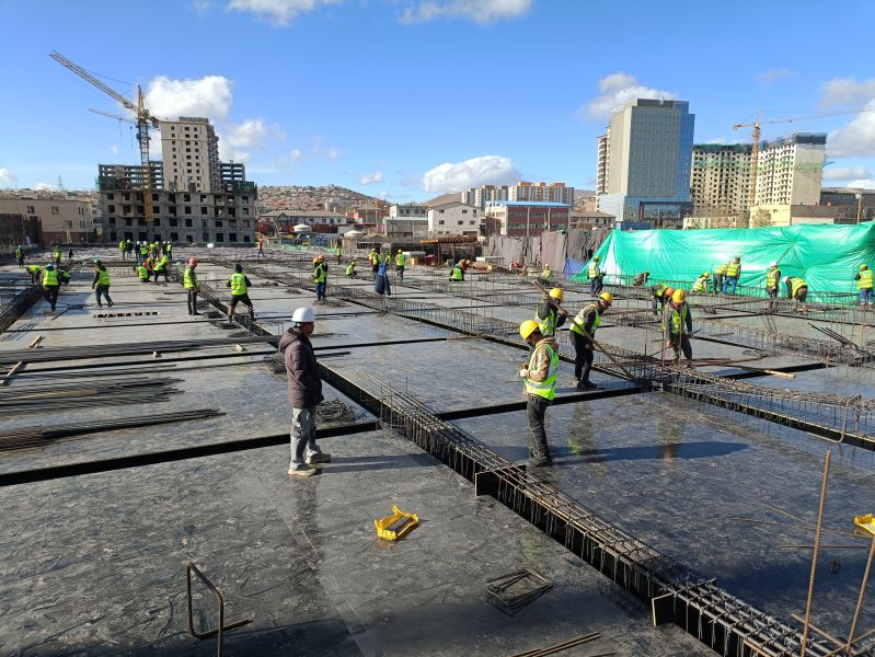 施工过程中,由于蒙古国属温带大陆性气候,降水少。春秋两季短促,夏季高温干热,昼夜温差大,突发性天气变化快,让项目部进驻现场后遇到前所未有的恶劣环境。困难面前,分公司与项目部齐心协力,充分发挥央企担当,加强与蒙古国建筑与城市建设部、国家商务部、项目管理公司沟通联系,及时建立工程例会制度,每天通过线上线下方式,对工程进度、材料采购、设备进场、财务管理以及工程施工中存在的问题进行总结,查找不足,做到当天施工进度当天完成,当天产生的问题当天消化解决,为工程顺利推进打通最后一公里。连日来,项目部全体管理人员与参战职工克服人生地不熟和风俗习惯的差异性,变被动为主动,倒排工期,日夜奋战,顽强拼搏,10月26日,随着最后一罐混凝土浇筑完成,标志着由由中华人民共和国援建、中国二冶承建的蒙古国棚户区改造项目B区地下车库顺利封顶,累计浇筑混凝土1190立方米。