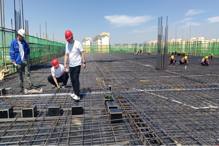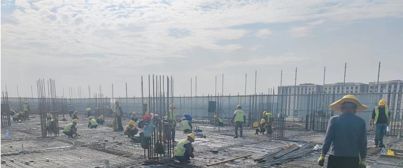 包头稀土永磁电机产业园标准化厂房项目是包头市全面落实自治区“闯新路、进中游”“在新能源领域再造一个‘工业内蒙古’”的发展目标而规划建设的首批重点项目。本项目位于包头稀土高新区朝阳路以东,腾飞大街以南,凌云路以北,星辉路以西,总建筑面积36704.2平方米。主要涉及1#车间、2#车间、3#车间、4#车间建筑、结构、给排水、暖通、电气等施工内容。在这里,六十余名一线建设者头顶烈日,汗如雨下,与高温“硬碰硬”,掀起“党旗飘扬、党徽闪光”大干二季度劳动竞赛热潮,比学赶帮超,赛工期、赛质量、赛安全、赛技术、赛成绩、赛奉献,在保证安全、质量的前提下,仅仅用89天的时间完成了3#车间主体结构施工任务。眼下,建设者依然在难以抵挡的“热”潮中,战高温、斗酷暑,坚守在岗,辛勤付出,加紧进行主体结构钢筋绑扎、支模和混凝土浇筑,展现出了火一般的斗志与豪情。