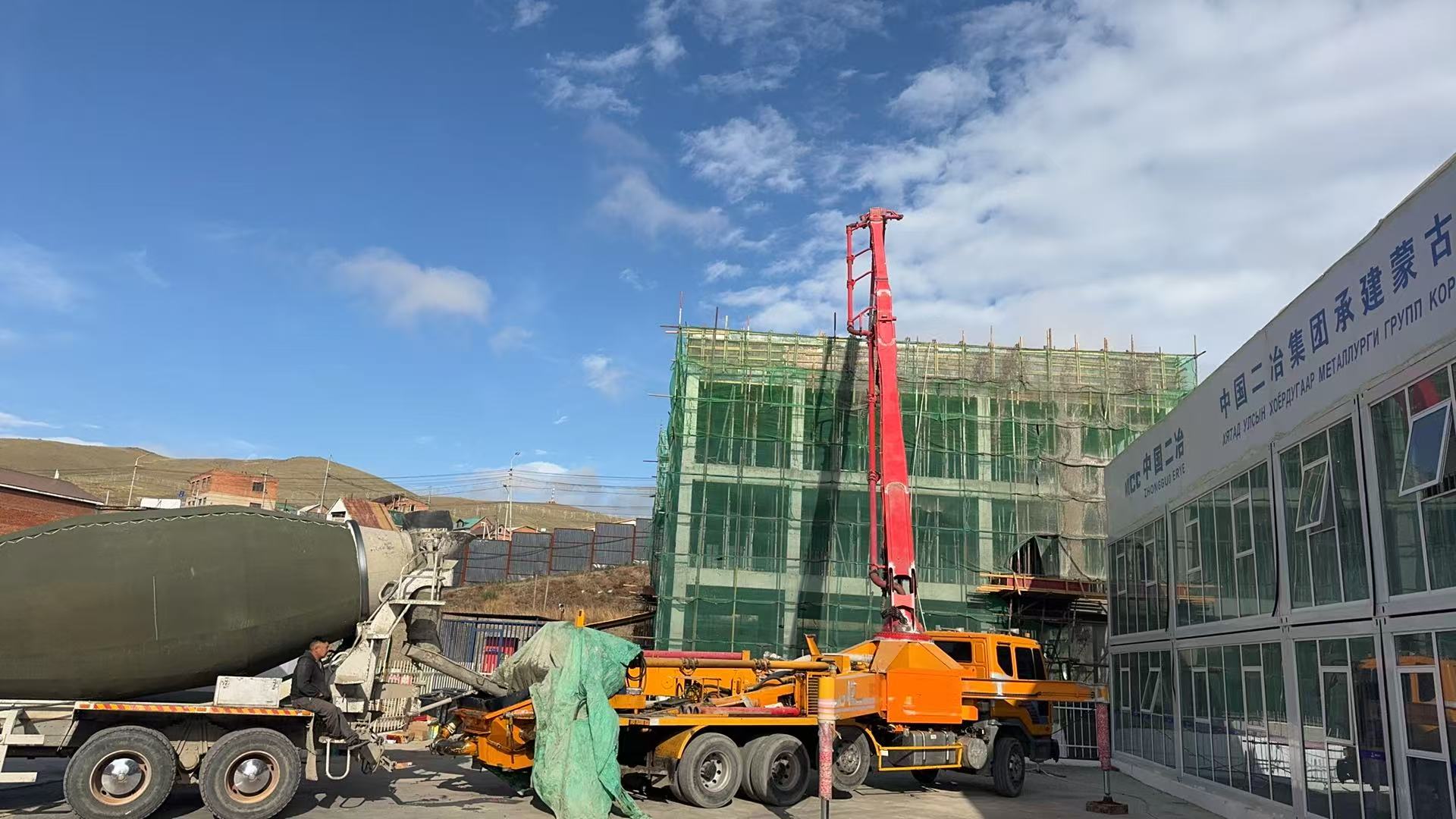 6月10日,中国二冶蒙古国乌兰巴托市丹巴达尔扎供热厂项目办公楼工程封顶大吉,海外项目建设者奋战当夏跑出施工建设“加速度”。