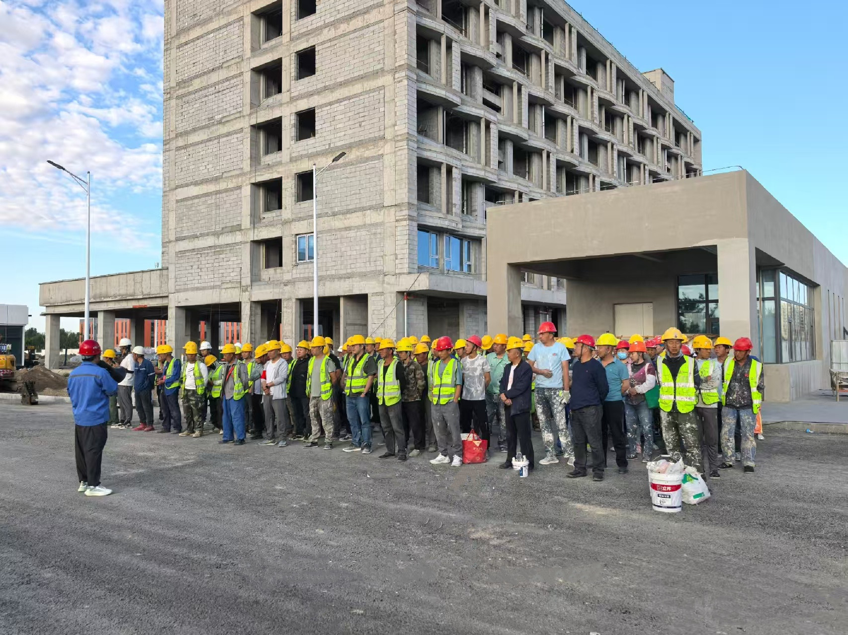 在年产5000吨高性能钕铁硼磁性材料项目(一期)综合楼、配套辅房及室外工程、赤峰高新区东山产业园新能源材料(光伏钨丝)标准化厂房建设项目、呼和浩特新机场配套建设项目航站区配套设施业务用房工程项目,这些项目正加紧进行精装修,项目部通过管理人员对临时用电、室内装修、专业安装等安全风险进行讲解。要求现场人员禁止吸烟,做好安全防护措施,并强调加强现场安全文明施工。新进场人员必须先进行三级安全教育及交底。及时消除安全隐患,提升全体人员安全意识。