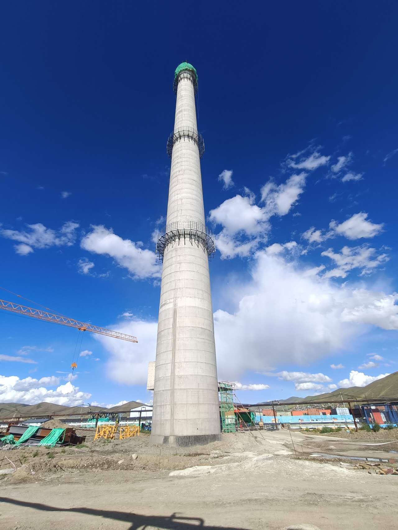 本项目是蒙古国为积极应对基本城市日益增长的需求服务,不断更新提升城市形象,巩固民生事业,全面增强当地人民幸福感和安全感的重点项目,建设地址位于乌兰巴托市青格勒台区十九分区丹巴达尔扎。其中,烟囱全高95米,钢筋混凝土板式独立基础,筒身为C30钢筋混凝土薄壁结构,内衬采用100毫米厚岩棉外砌筑耐火砖。工程开工建设后,针对工期紧、任务重、现场条件复杂、单体工程交叉作业频繁等不利因素,组织作业人员克服当地风沙大的恶劣环境,采取“分区分段流水作业+24小时轮班制”施工方法,灵活作战,全力以赴,工程以每2天浇注3节的施工速度向上攀升,经过不懈努力,提前完成95米高的筒身浇注任务,工程就此实现封顶目标。
