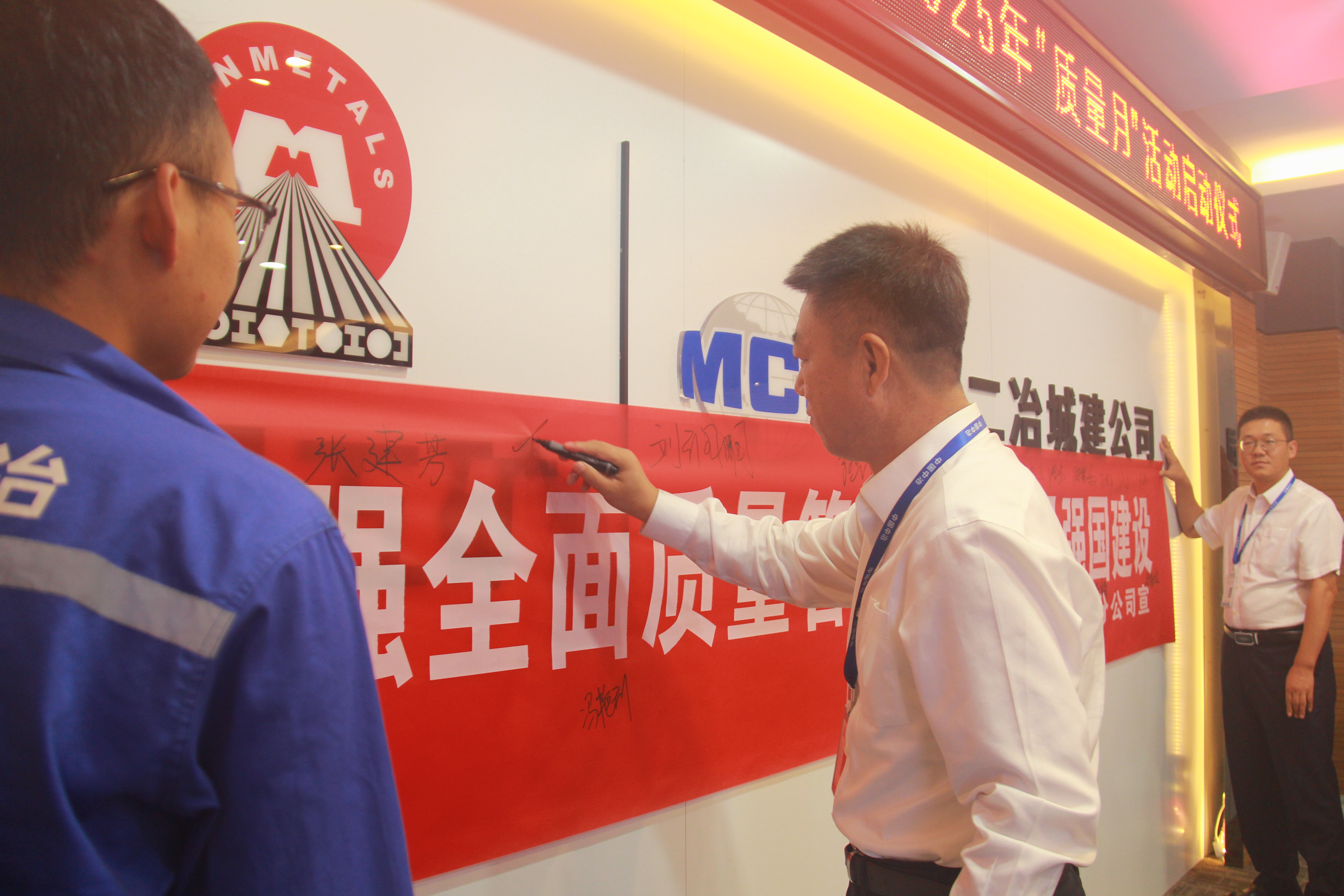在集体签名承诺环节,主会场参会人员围绕“加强全面质量管理,促进质量强国建设”主题,在横幅上庄重签名。分公司领导带头,与会人员依次承诺,一笔一划皆是对公司、对客户、对社会的质量誓言,体现了城建分公司上下同心、共抓质量的决心,凝聚起全员筑牢质量防线的共同意志。