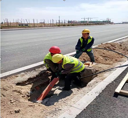 包头市老北梁腾空外环路管网工程位于西脑包大街至东河村北路,本段道路全长6298.562米,采用双侧对称排列的照明方式,共布设路灯340基。同时在每基路灯及投光灯基础旁砌筑方形电缆检查井505个,在过路管两端及线路转弯处砌筑圆形电缆检查井,每个检查井均为700×500×1000毫米,工程铺设管路长,检查井砌筑存在着材料运输困难、施工周期长等问题。为此,项目部采取移动式分段跳仓施工方法,有条件的立即组织人员、材料、机械进场,展开短、平、快施工。
