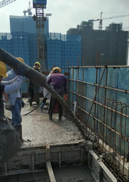 湖南株洲恒大誉景花园项目工程是一项规模较大且功能齐全的公用房屋建筑项目,项目占地660亩,建筑面积88万平方米,容积率仅1.99。在进行混凝土浇筑之前,技术人员进行了混凝土技术交底,重点强调了混凝土浇注过程中的安全注意事项,要求劳务作业人员必须佩戴安全帽、穿马甲,同时也做好了施工现场与混凝土搅拌站的协调工作,确保施工过程中各项工作有序进行,避免由于施工生产组织不利对工程质量、安全产生影响。