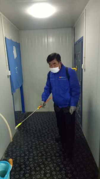 该工程受包头地区严冬考验,再加上突如其来的疫情,使得原计划复工时间一推再推。面对困难,城建分公司新都市区商务大厦项目部加大与业主、政府沟通力度,积业主之所想,与业主携手织密疫情防控网,为项目部人员返岗上岗设置了“四道关”,一是实名登记造册,摸排掌握春节动向、健康状况等;二是进入项目部或施工现场进行疫情防控交底和技术交底,每个职工必须配戴好医用口罩,进行体温量测;三是组织开展防疫安全培训;四是对返岗人员采取分餐制观察14日,返岗人员只有全部“通关”才能正式上岗,同时必须进行现场全方位、无死角消毒后方可施工。