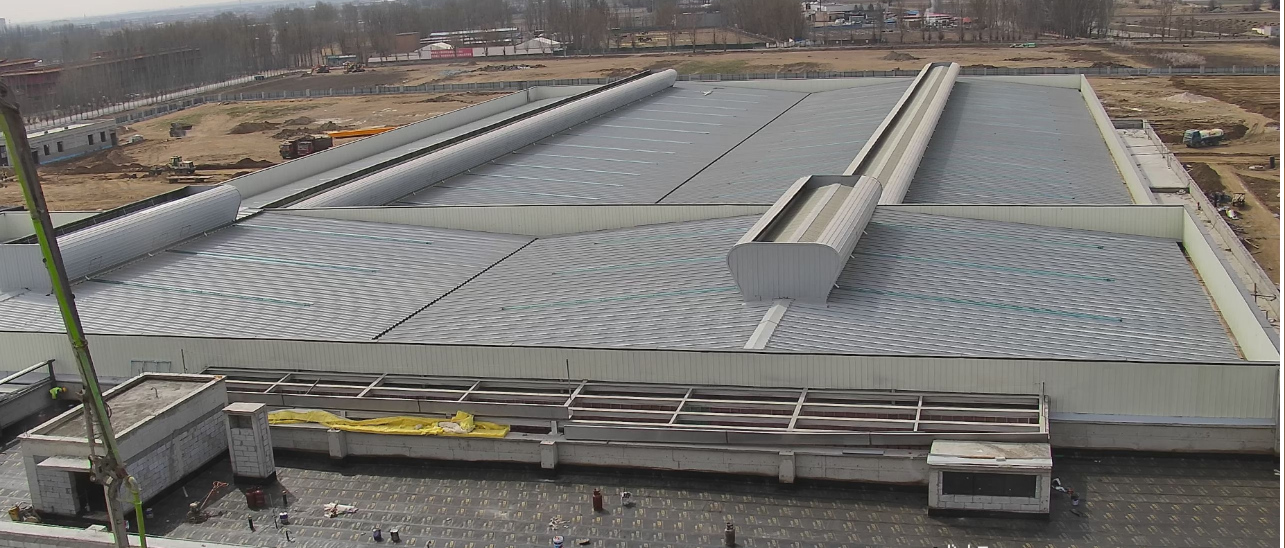 本项目坐落于包头稀土高新区朝阳路以东,腾飞大街以南,凌云路以北,星辉路以西。其中,由城建分公司施工的2#生产车间建筑面积2455.6平方米,单层门式钢结构,高度15.73米,最大单跨跨度34.6米;3#生产车间建筑面积20167.86平方米,主体为单层门式钢结构,附属局部一层、三层混凝土框架结构,主要包括建筑、结构、给排水、电气、暖通等施工内容。工程开工建设后,项目部突破施工场地受限、结构形式复杂、工期紧等特点,精心编制施工方案,合理组织工序穿插,全体建设者以工地为家,披星戴月,顶强风,冒暴雨,斗严寒,争分夺秒抢抓进度,105天内完成2#、3#主体结构施工任务,实现封顶目标。