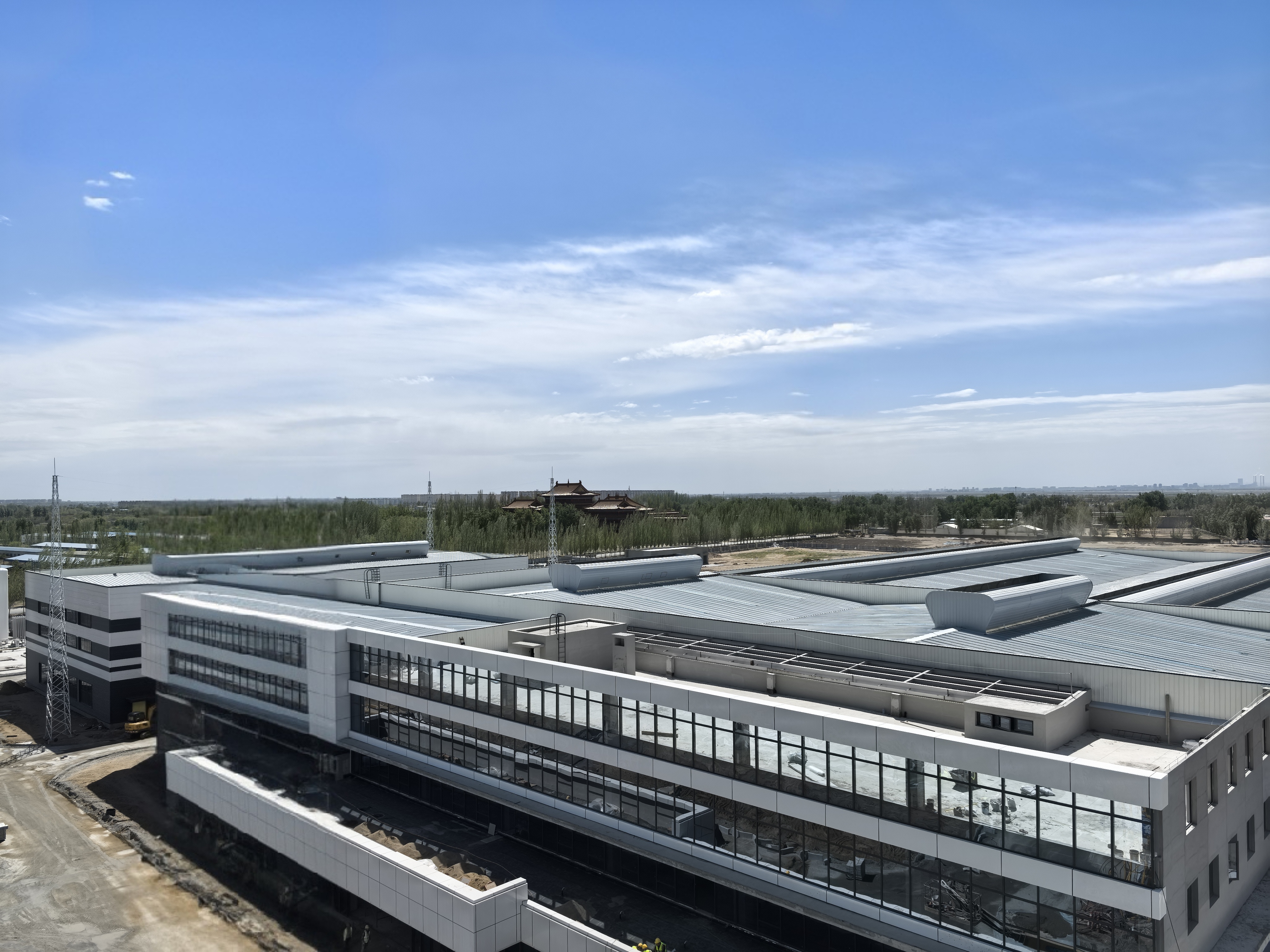 本项目坐落于包头稀土高新区朝阳路以东,腾飞大街以南,凌云路以北,星辉路以西。其中,由城建分公司施工的2#生产车间建筑面积2455.6平方米,单层门式钢结构,高度15.73米,最大单跨跨度34.6米;3#生产车间建筑面积20167.86平方米,主体为单层门式钢结构,附属局部一层、三层混凝土框架结构,高度16.1米,最大单跨跨度43.1米;连廊建筑面积82.35平方米,混凝土框架结构,高度10.8米,最大单跨跨度13.5米。工程内容包括建筑、结构、给排水、电气、暖通等。工程开工建设后,项目团队以严苛标准推进工程质效,克服冬季低温、结构复杂等多项技术难题,统筹安全、质量、进度三项目标,大干168天,实现“当年开工、当年竣工”的佳绩。竣工验收中,评审专家一致认为项目工程质量、安全性能、工艺布局均达国内领先水平,同意项目通过竣工验收。