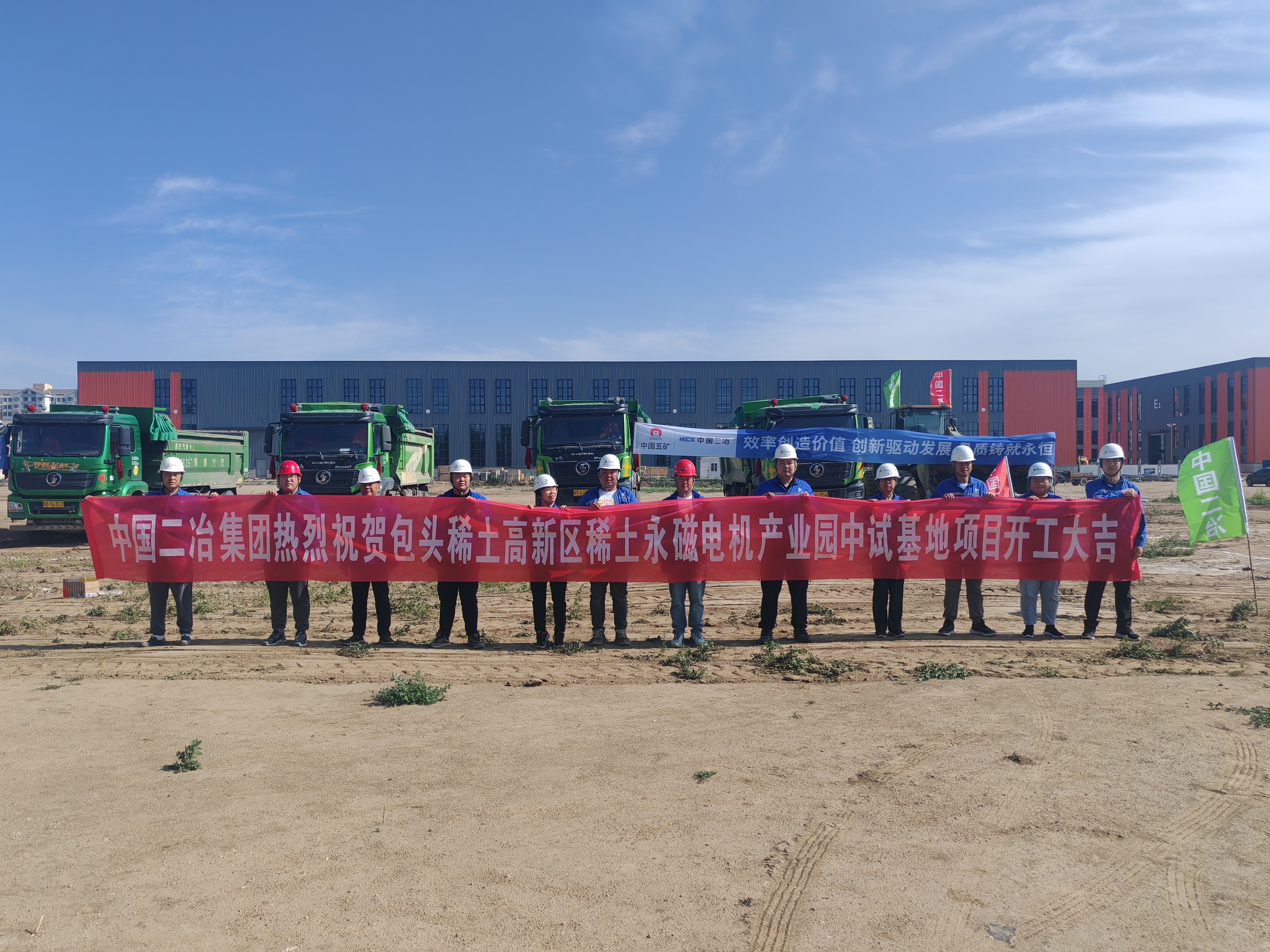 包头稀土高新区稀土永磁电机产业园中试基地项目-主体工程Ⅱ标段项目是根据国务院推动内蒙古高质量发展意见中“两个稀土基地”建设的相关精神,锚定“全国最大的稀土新材料基地”和“全球领先的稀土应用基地”目标,聚力招商引资,奋力推动稀土应用产业集群量质齐升,进一步向高端和前沿领域拓展的主要项目之一。工程开工建设后,项目部将继续以“起步即冲刺、开局即决战”的高昂斗志,发挥全过程全产业链优势,以一流的管理、一流的技术、一流的服务,打造经得起检验的精品优质工程,交出一份满意答卷,为推动稀土产业高端化、智能化、绿色化发展贡献二冶驻地央企更多力量。