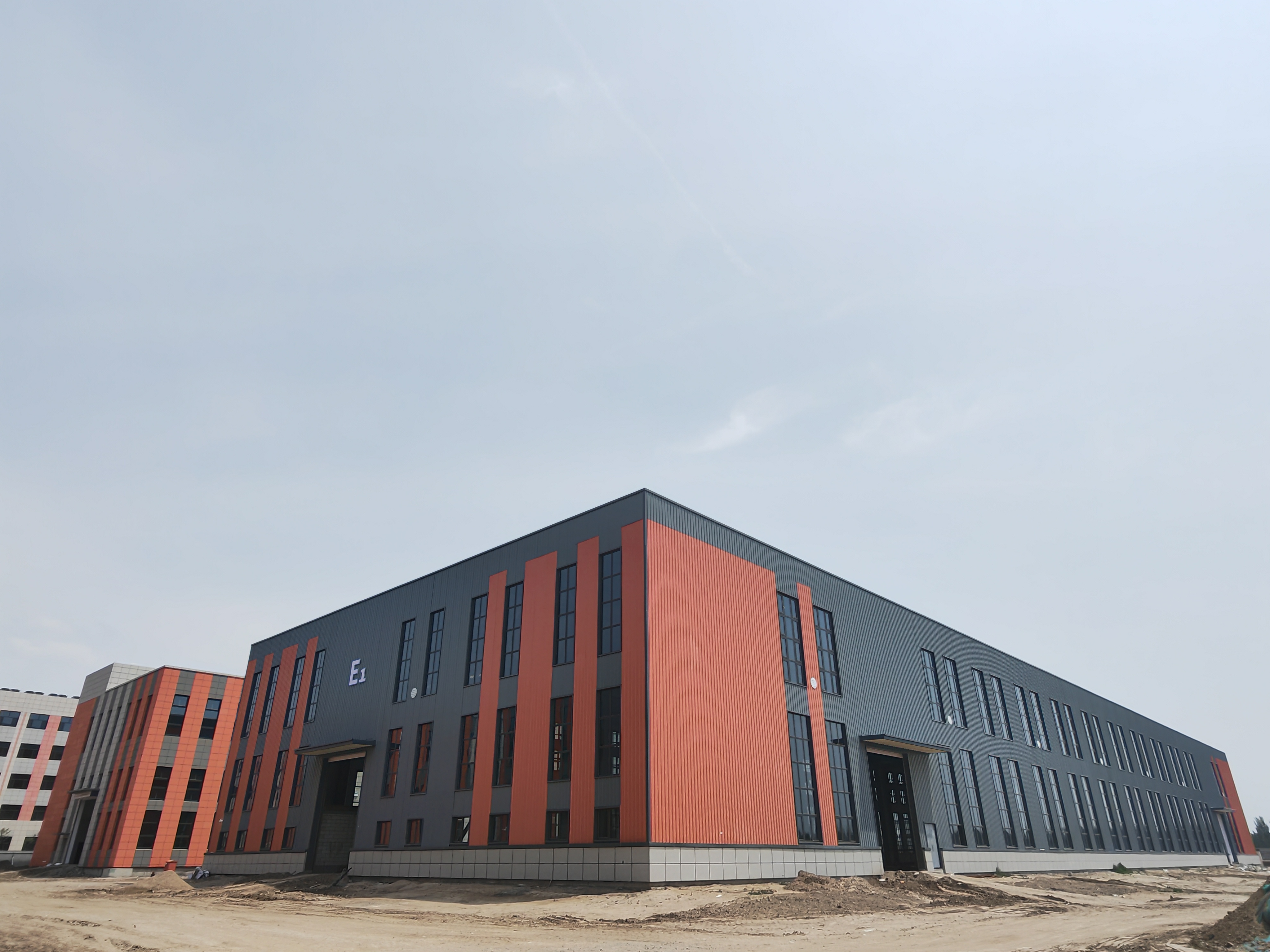 本项目是包头市坚持以永磁材料作为建设“全国最大的稀土新材料基地”的主攻方向,以稀土永磁电机为“全球领先的稀土应用基地”建设突破口,攻坚克难、加压奋进,推动稀土产业高质量发展的重点项目,共建设四栋车间。其中,D1、D2车间为二层钢筋混凝土框架结构厂房,建筑面积均为 8321.26平方米,E1、E2车间为钢结构厂房,建筑面积均为5992平方米,主要包括建筑、结构、给排水、电气等施工内容。工程开工建设后,项目部克服包头地区早晚温差大、施工场地狭窄、专业工程交叉作业频次高等重重挑战,全面推广四新技术提高施工效率,采取“分区流水作业+24小时轮班制”进行全流程施工,并通过BIM技术优化施工方案,确保质量安全双达标,工期进度双扣网,实现百分百履约目标。