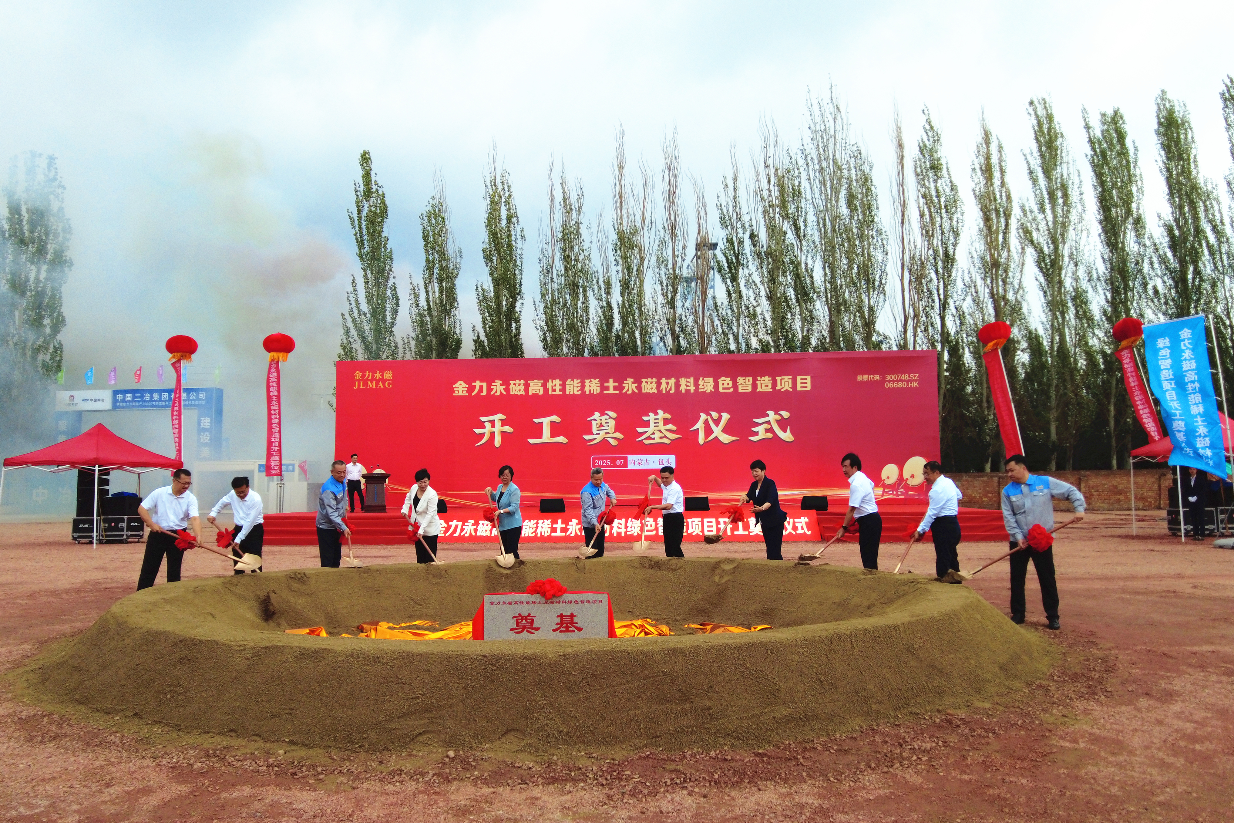 7月9日,中国二冶承建的金力永磁(包头)科技有限公司三期年产2万吨高性能稀土永磁材料绿色制造项目开工奠基仪式在包头稀土高新区隆重举行。包头市委副书记、市长孟庆维,市领导孟繁英、金永丽、王秀莲,中国二冶党委书记、董事长徐永锋参加开工奠基仪式。
