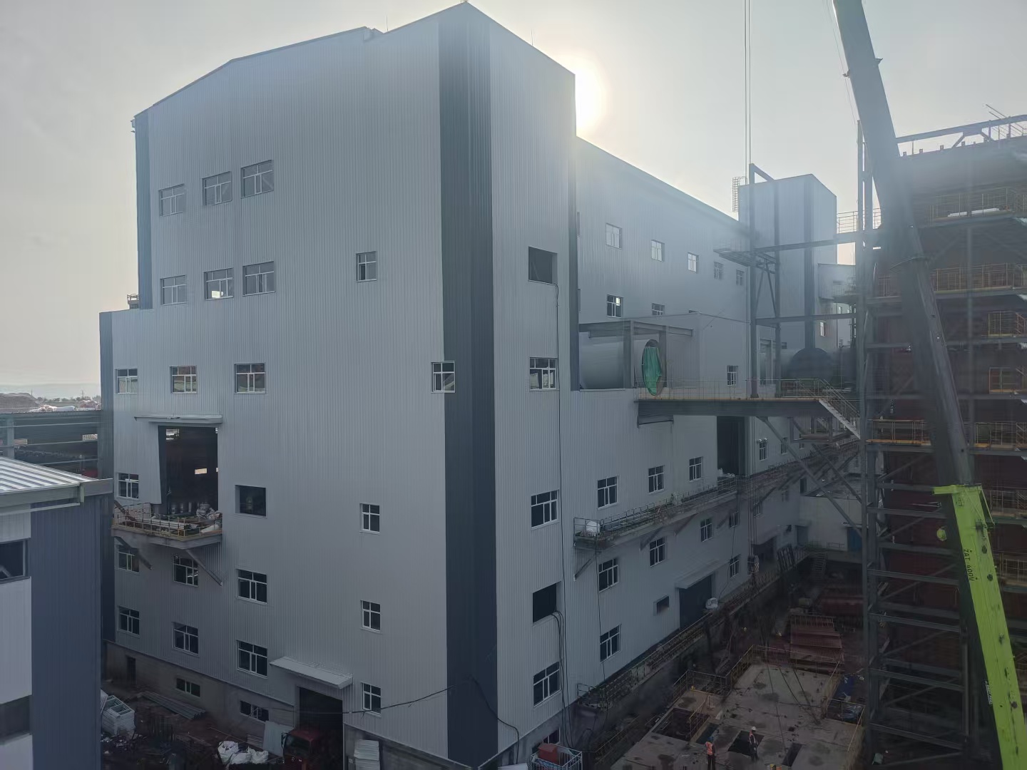 本项目是紧扣国家“双碳”目标,将绿色理念融入发展实践,持续探索以生态“含绿量”撬动发展“含金量”的优质项目。施工过程中,针对矿热还原工程施工战线长、混凝土浇筑体量大、施工工艺复杂等拦路虎,项目部团队提前优化施工组织设计和施工方案,强化质量巡检、材料进场检验、安全每日监管频率,通过分区突击、“土建+专业”工序有效衔接、增派专业队伍、实施进度日考核等举措,集中优势资源攻坚推进,确保矿热还原基础在26天内完成,主体结构177天完成,跑出施工加速度,在此基础上,项目部抢抓黄金施工期,节假日不停步,提前完成二次维护、装饰装修等关键节点,土建工程就此全面完成。