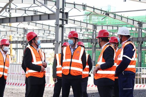 期间,陈建光赴中国二冶大地熊项目带班检查,听取项目概况、项目管理、安全生产、疫情防控、党的建设等情况汇报,并强调要按照属地政府要求做好工地疫情防控,从严从实从细落实安全生产各项举措,确保工地施工规范安全、项目顺利履约。