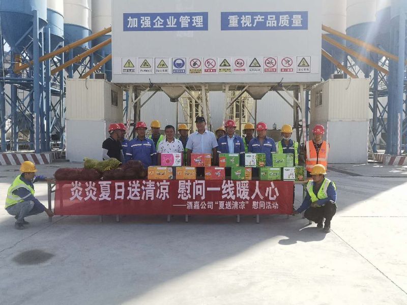 近期,嘉峪关市连续出现高温天气,为保障现场施工顺畅,确保安全生产。8月8日,甘肃公航旅(酒嘉)投资有限公司副总经理李保文等领导冒着高温酷暑到S06酒嘉绕城高速公路项目部开展“夏送清凉”慰问活动。项目部书记张新洪以及部分员工参加了上述活动。
