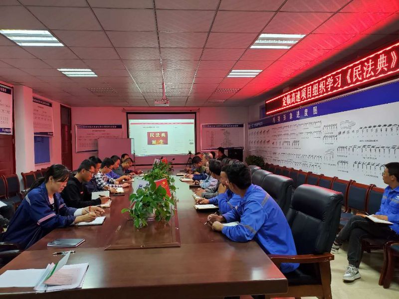 为提高职工的法律意识及自我防范意识。9月2日,定临高速项目组织全体员工学习了《中华人民共和国民法典》,并开展了“知法懂法、依法守法”为主题的党日活动。本次学习活动由党支部书记荆保珠主持,党员发展对象张志威主讲。
