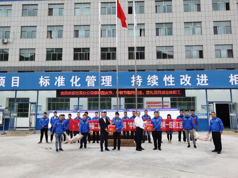 在国庆中秋“双节”来临之际,为切实做好“中秋、国庆”双节期间的施工生产和职工生活,中国二冶工会联合甘肃分公司深入项目施工一线开展“中秋 国庆”双节慰问活动,为奋战在项目一线的员工送去了羊肉、月饼、水果,向他们致以节日的问候和崇高的敬意,将公司的温暖和关爱送到施工一线,把浓浓的情意送给了一线员工。