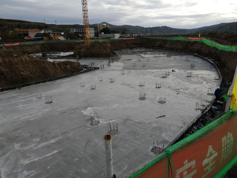 张家川回族自治县中医医院医技综合楼及二期建设项目以设计图纸后浇带为基准,进行基础底板防水保护层分段施工浇筑,所用保护层混泥土强度为C20细石,厚度为60mm。为保证地下室底板防水的质量,项目工程技术部和安全质量部相关人员认真检查防水铺贴及保护层浇筑的质量,特别是对阴阳角以及关键部位进行了仔细检查,确保达到良好的防水效果。