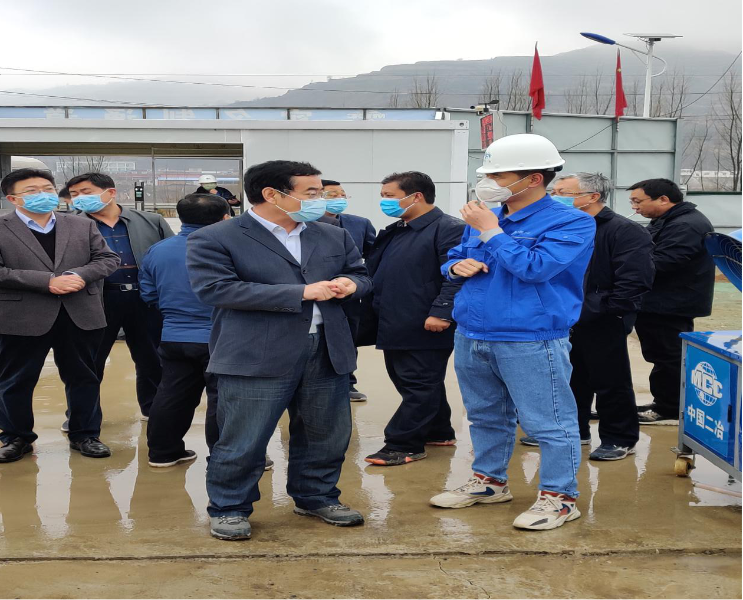 2月27日下午,张家川县委书记陈晰、县长马筱宁一行到中国二冶张家川县中医医院迁建工程项目检查指导疫情防控及复工复产工作。项目经理张虎林、安全质量部负责人高民陪同检查。