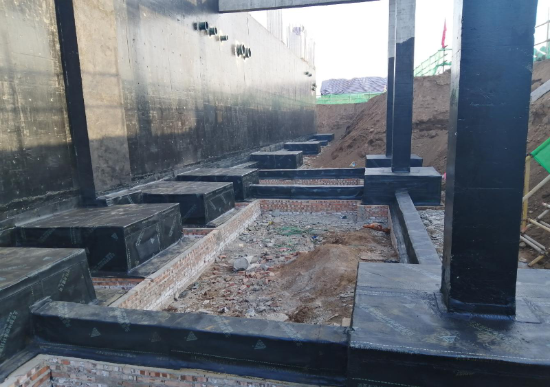张家川县中医医院迁建工程项目医技综合楼基础形式为桩基础,结构形式为框架—剪力墙。地下1层,地上13层,结构高度53.15m,地下室结构层高为5.8m,工程防水等级为一级,采用两层4.0厚SBS改性沥青防水卷材(聚酯胎)+钢筋混凝土自防水(抗渗等级:P6)。考虑到本项目的工程进度,项目经理部与监理单位达成协议,地下室外墙SBS改性沥青防水卷材与土方回填同时进行,为确保防水卷材粘贴及土方回填的质量,工程技术部对施工人员做详细的技术交底,项目经理部安排专人全天监督,同时积极配合监理单位对防水卷材铺贴质量检查及土方回填土工击试验等各项工作,以真正达到安全为主、追赶进度、保证质量、提升效益的目的。