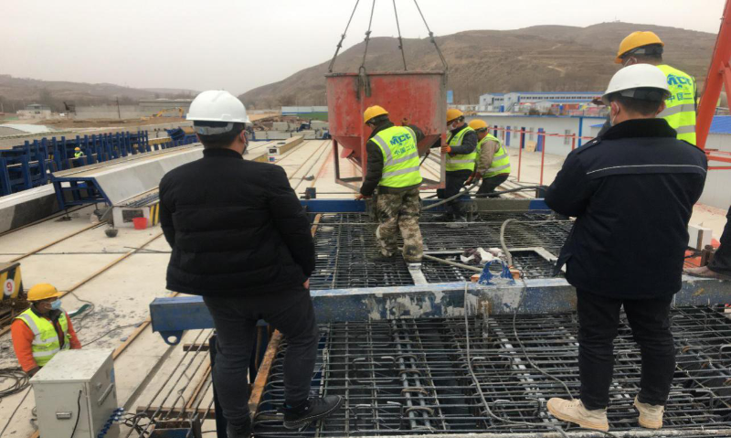 3月8日下午,定西至临洮高速公路工程项目(DL01合同段)K10场站1#制梁场复工后首片跨径20m预应力混凝土连续箱梁顺利浇筑。