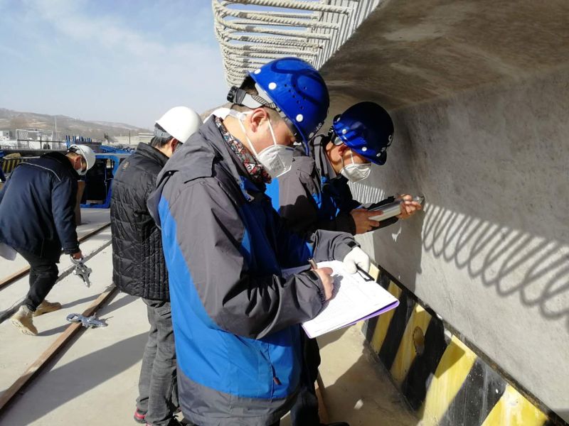此次检查从内业资料和外业实体两方面展开,外业实体检查内容包括项目全线已完工路基土石方压实度、防排水构造物断面尺寸、小桥及涵洞结构尺寸和混凝土强度、桥梁工程(下部:墩台混凝土强度、结构断面尺寸、钢筋保护层厚度及主要受力钢筋间距、墩台竖直度;上部:混凝土强度、主要结构尺寸、钢筋保护层厚度及主要受力钢筋间距)、隧道工程(衬砌强度、衬砌厚度、大面平整度、二衬钢筋间距、钢拱架间距、隧道二衬钢筋保护层厚度、初支厚度等);内业资料检查包括施工过程工序资料、各项施工方案等,并对全线复工准备情况及安全隐患进行排查。