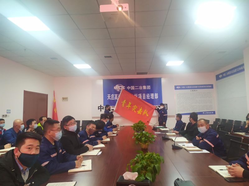 会议由项目经理耿东红主持,首先由项目部总工程师程磊传达了朱广侠董事长在公司“大干二季度”劳动竞赛会议中的讲话精神,朱广侠董事长强调“各单位、各部门,要抢抓每一天,紧盯每一周,紧握每个月,紧扣每个项目,每一项指标,集中精力、集中资源全力完成任务目标,以大干决胜的实际成效,确保双过半,决胜4+1,为全面完成全年目标任务奠定坚实的基础。”随后,项目经理耿东红为党员突击队、青年突击队进行了授旗仪式,党员代表王祯、青年突击队代表刘杰上台接了旗。紧接着,党员突击队队长王祯和青年突击队队长刘杰分别进行了表态发言,他们表示“为深入贯彻落实公司‘决战二季度、确保双过半’动员会和甘肃分公司会议精神,把被疫情耽误的损失夺回来,树立‘比学赶帮超’的良好氛围,高举旗帜,做好传帮带,发挥更大的主观能动性,吃苦奉献在先,加班加点,努力拼搏,用跑接力赛的精神、主动出击、迎难而上,工作接力点向前送几步,让接力的队友接的顺手、跑的舒服,用榜样感召力和影响力带动广大员工积极参与到活动中来,快速形成大干热潮,为确保时间过半、任务过半乃至实现全年各项目标而奋勇拼搏。”随后,项目副经理胡俊海发表了讲话并下达了二季度计划完成产值及施工任务计划。最后,项目经理耿东红做了总结发言,提出了项目部目前存在的一些问题,同时要求相关人员要积极响应公司、甘肃分公司“劳动竞赛”要求,“二季度劳动竞赛”需要所有参建人员一起努力,各部室针对公司动员大会部署的各项工作提前落实,针对具体工作进行安排部署并确定相应时限要求,天庄全体参建员工应认识到开展“劳动竞赛”的重要性及紧迫性,要抓住施工生产的黄金季节,振奋精神,鼓足干劲,与时间赛跑,坚持抓好疫情防控工作“毫不动摇”,抓好完成全年目标任务“毫不动摇”,统一思想,步调一致,项目部要不断优化施工方案,制定安全、质量、进度、工期、综合管理和环境保护等重点工作考核细则和标准,进一步明确了天进度、周进度、月进度,层层签订包保责任状,实现指标到工点,责任到个人,不断优化施工结构不放松,在安全管理、经营管理、施工管理等短板弱项上精准发力、创新创优、创先创效,促进项目工程平稳健康发展。