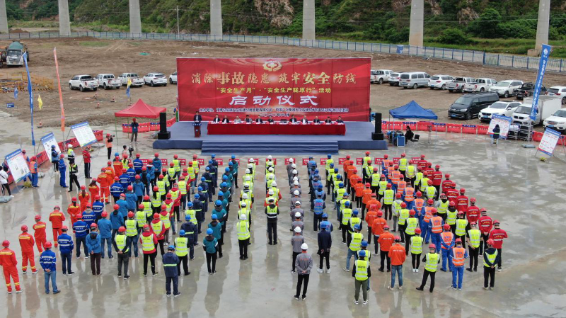 为进一步强化全民安全意识,形成建设项目讲安全、重安全的良好安全氛围,6月1日,由甘肃公航旅天庄高速公路管理有限公司主办、中国二冶集团天庄总承包TZZB8标项目经理部承办的“安全生产月”暨“安全生产陇原行”活动启动仪式在中国二冶集团天庄总承包TZZB8标项目经理部1#场站顺利举行。天水市交通运输局副局长王平子,天水市应急管理局副局长孟福荣,清水县交通局局长张进录,麦积区应急管理局救援服务中心主任吕利成,麦积区安全生产执法监察中队队长刘爱军,甘肃公航旅天庄高速公路管理有限公司监事会主席马钧剑、副总经理张亚鹏、副总经理张华、中国二冶集团甘肃分公司副总经理于洪跃、项目公司各部室人员以及总包单位、监理单位、试验检测单位共17家参建单位200名代表参加了仪式。