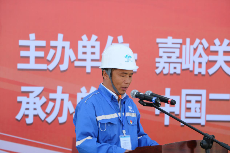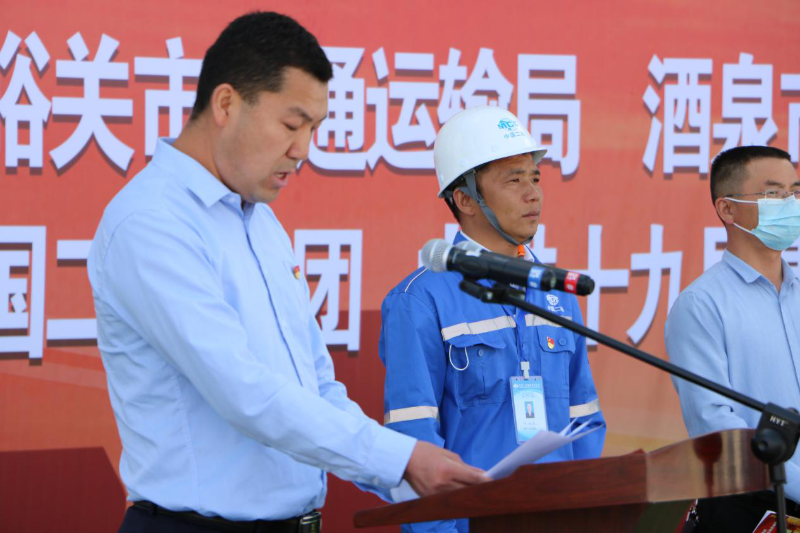 (S06酒嘉绕城高速公路建设项目参建单位代表中国二冶集团甘肃分公司副总经理赵钱作表态发言)
