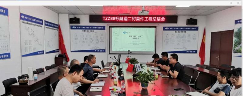为指导后续工程顺利推进, 8月11日, 天庄项目部召开隧道工程二衬施工首件总结会。工程监理、天庄高速公路技术人员参加了会议。