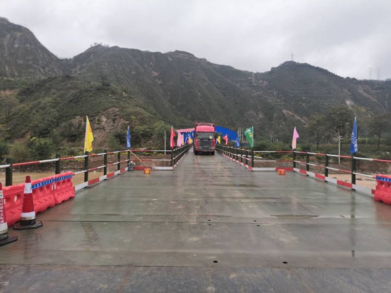 10月1日,天庄高速项目社棠互通立交6号便道钢便桥建成顺利通车。