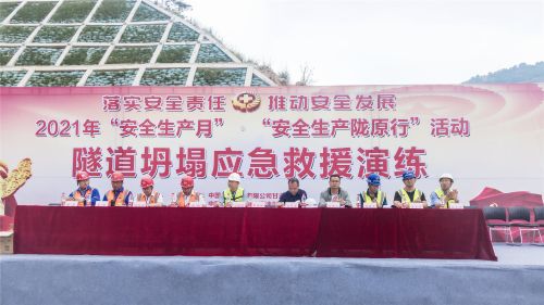 为深入开展2021年全国“安全生产月”活动,6月24日,天庄高速公路项目部开展隧道防坍塌应急演练。天水市麦积区应急管理局副局长辛自斌,天水市麦积区交通运输事务服务中心主任王建国,天水市麦积区应急管理局执法大队副大队长刘爱军,天水市清水县交通局局长魏天军,天水市清水县安全生产执法监察大队队长王福元,甘肃公航旅天庄高速公路管理有限公司监事会主席马均剑,陕西高速公路工程咨询有限公司天庄高速TZJL4标驻地办驻地高监杨俊杰,中国二冶集团甘肃分公司副总经理赵钱及项目部全体管理人员、施工作业人员共60余人参加了演练。